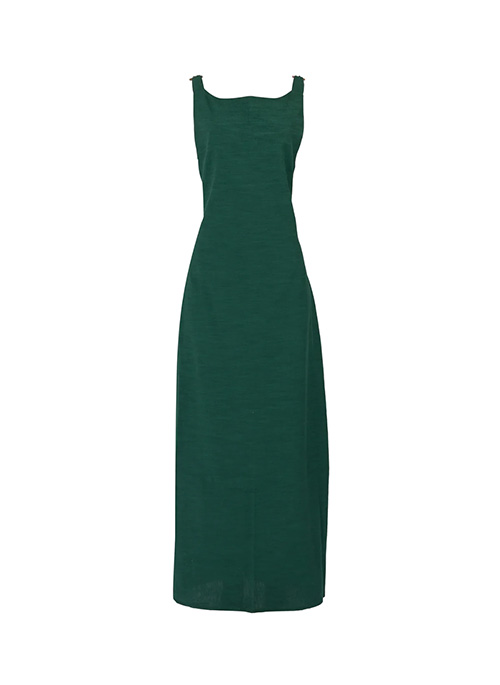 Flattering sleeveless long dress with adjustable and removable strapy open back made from repurposed leather. Hidden back zipper closure and back vent.
