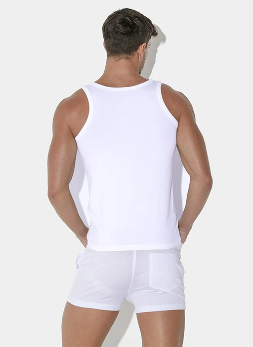 Pack Pride 2023! Tank top with our iconic barcode logo in the colors of the flag. Our exclusive mini-short in sports mesh and our C-Strap to complete this look.