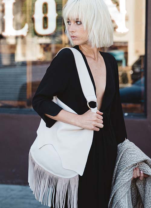 A Molly G original, making a comeback—Free your inner Wild Child with this vintage-inspired hobo bag. Made of our signature buttery-soft leather, this bag is both timeless and endlessly cool. Wide shoulder strap for comfort, back slip pocket for ease, and asymmetrical flap and bottom fringe for effortless style. Every outfit looks better with Wild Child—that's a fact!