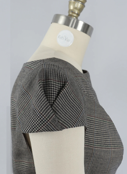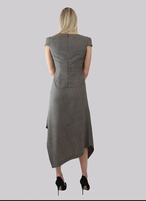 - Prince De Galles Check Virgin Wool Asymmetrical Dress. Made to Order