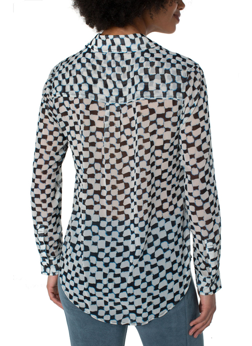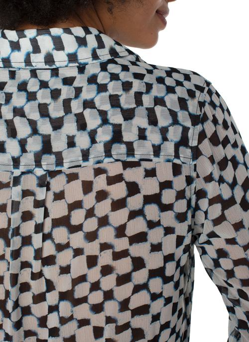 This checkered printed blouse is a fabulous statement piece with beautiful blue hues. Pair it with trousers for the perfect workwear or wear it out on the town with denim and heels for an elevated chic look!