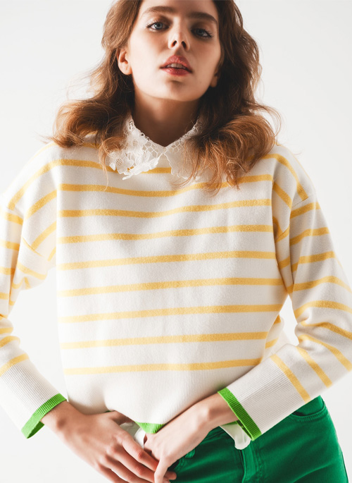 NEW STRIPE SWEATER IN YELLOW & WHITE
