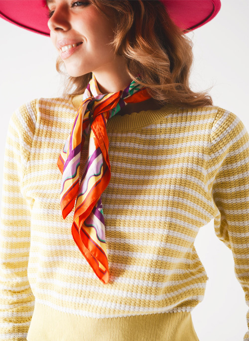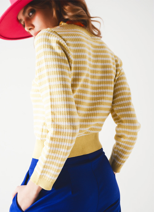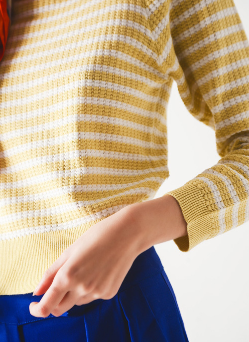 NEW YELLOW STRIPED SWEATER Details: 100% Cotton. Model is wearing size S. Model is: 33-23-35 Height: 5'10''. Runs true to size. Regular Fit. Style Nº: 5280625.