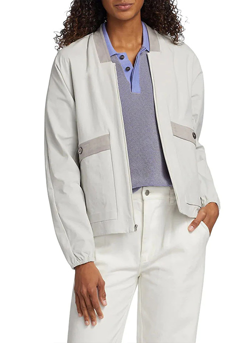 The Yodit track jacket is crafted of a nylon stretch fabrication.