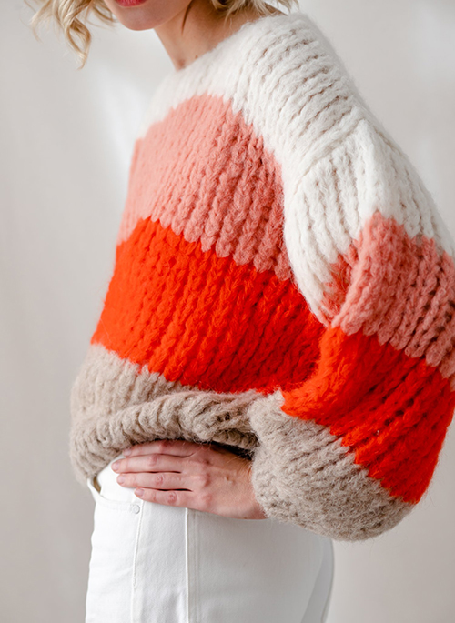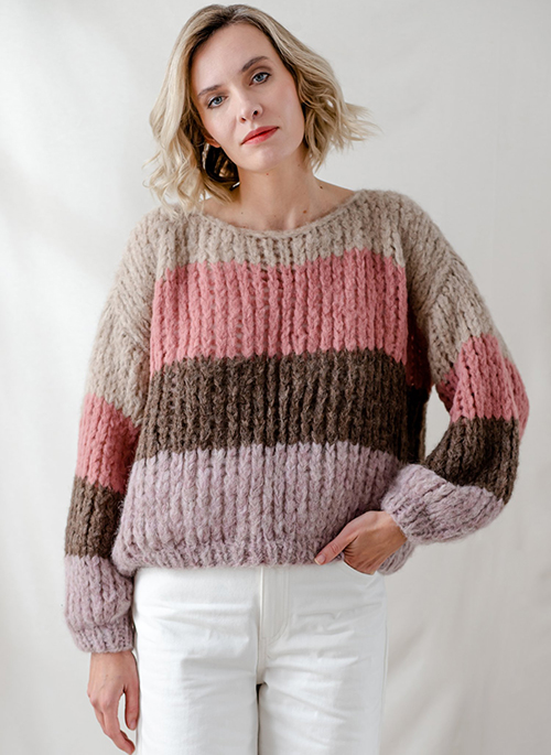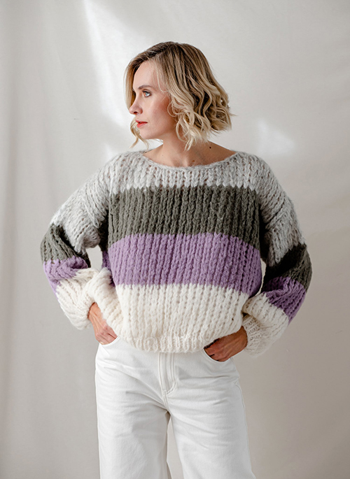 Hand knitted in 2 threads Yzze is a fun and colorful sweater. You will not go unnoticed wearing Yzze, perfect to wear on its own in Autumn and Spring and under a coat for winter.