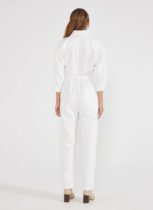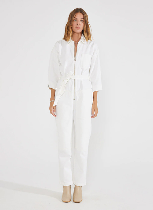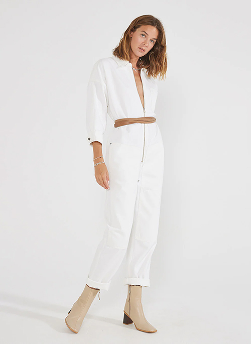A versatile one-piece with a straight fit, a self belt and authentic carpenter detailing.