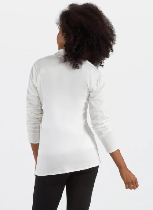 This can be worn as a blouse if zipped mid-way or zip up for a more modern spin on the turtleneck.