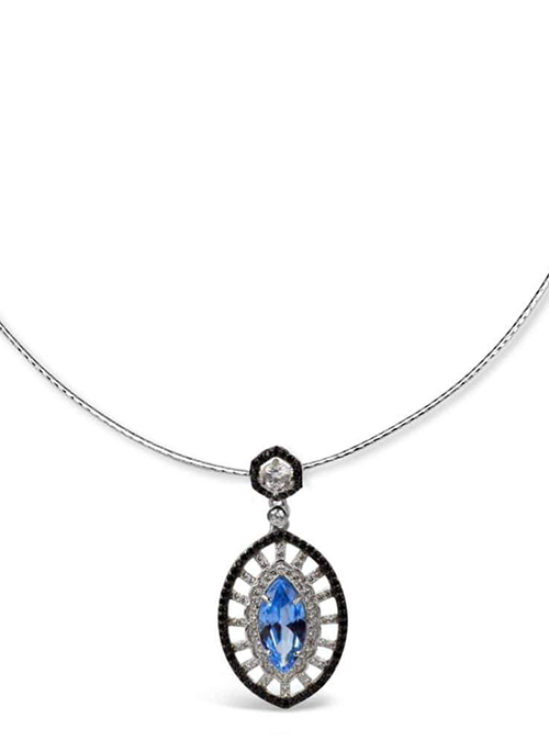The iconic looks from Studio 54 inspired us to introduce a shimmering collar necklace that resembles the neon-lit dance floor. This statement piece will add a maximum punch to any outfit. It is cast from 925 sterling silver and set with cubic zirconia. Sparkle from across the room with swept-back hair.