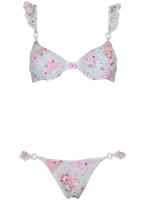 The cutest bikini for this summer – meet Zoe Pink Paisley. With adjustable straps, structured cups and ruffled details.